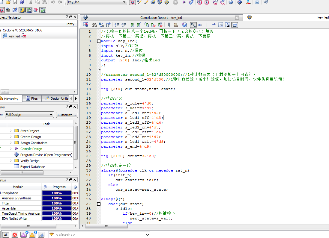 名称:LED长按点亮控制设计Verilog代码Quartus? DE1-SOC开发板