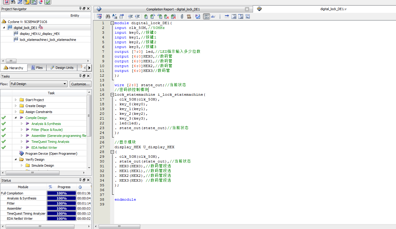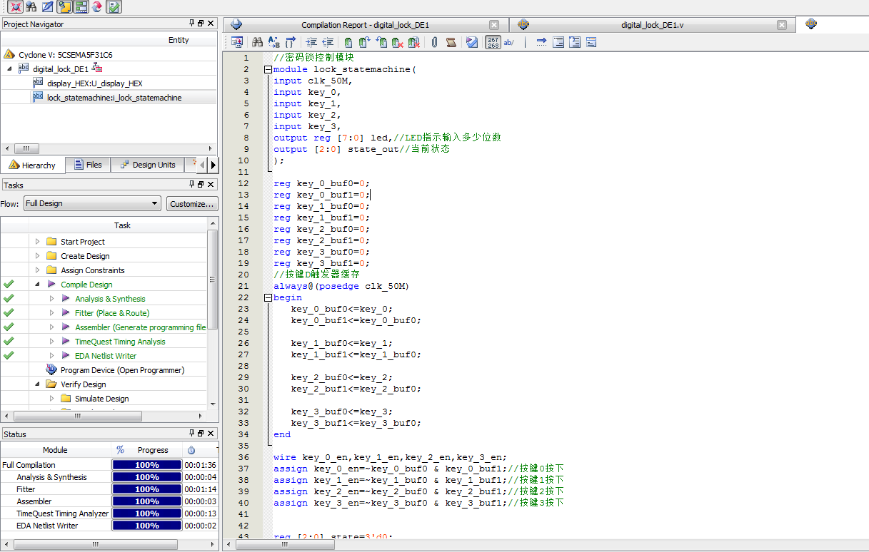 名称:密码锁设计Verilog代码Quartus? DE1-SOC开发板