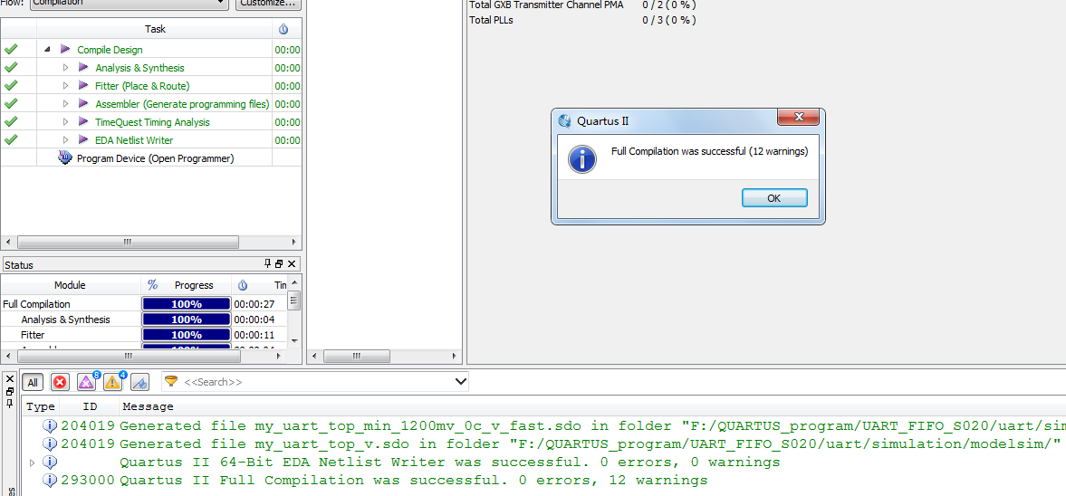 名称:串口(UART)接口转FIFO接口设计Verilog代码Quartus仿真