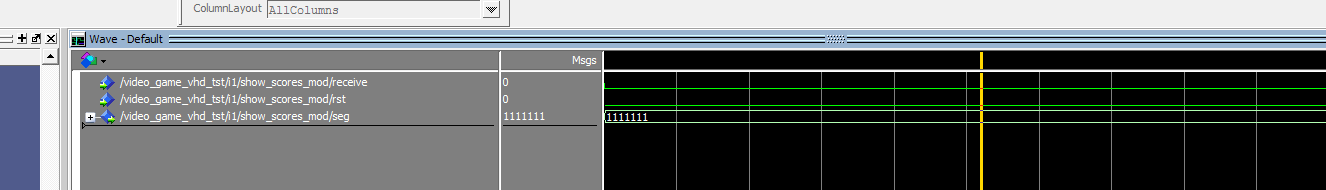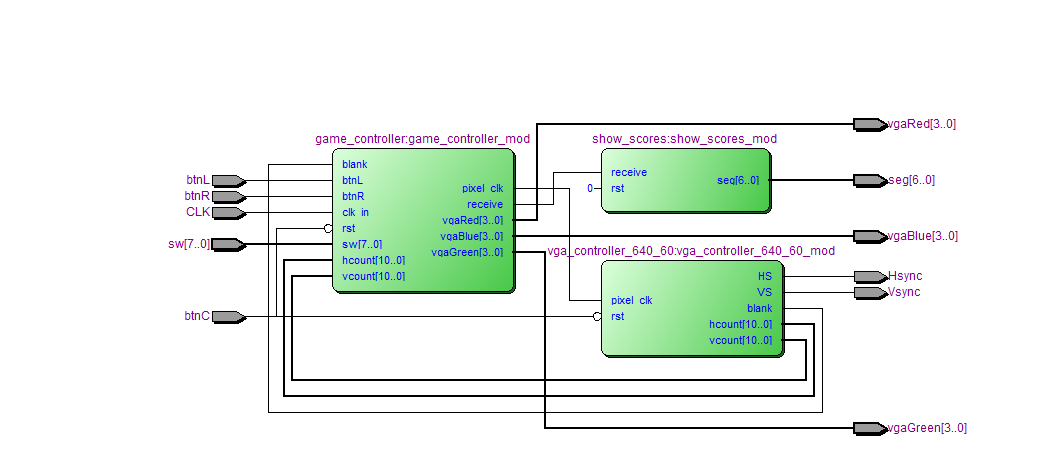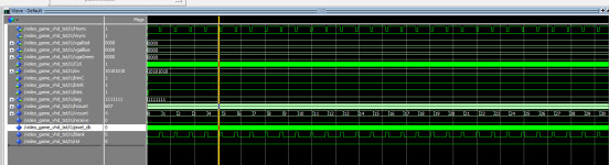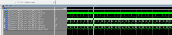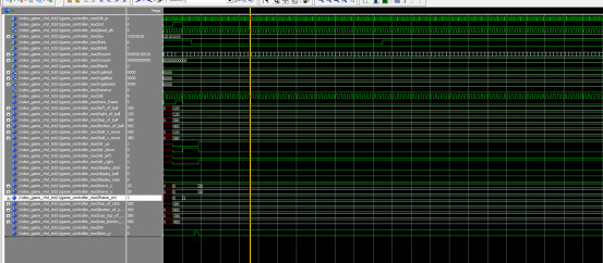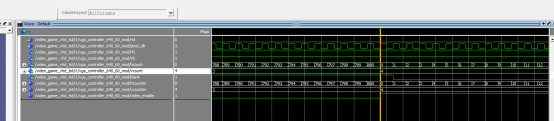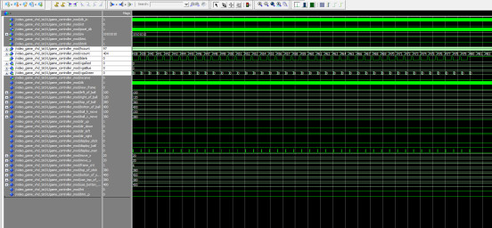 LIBRARY?IEEE; ???USE?IEEE.std_logic_1164.all; ???USE?IEEE.NUMERIC_STD.ALL; ???--use?IEEE.std_logic_unsigned.all; ???--use?IEEE.std_logic_arith.ALL; ??? --游戏控制 ENTITY?game_controller?IS ???PORT?( ??????clk_in,rst??????:?IN?STD_LOGIC;--50MHz ??pixel_clk:OUT?STD_LOGIC;--VGA时钟 ??????sw?:?IN?unsigned(7?DOWNTO?0);--SW移动速度 ??btnL,btnR?:?IN?STD_LOGIC;--按键 ??????hcount???:?IN?unsigned(10?DOWNTO?0); ??????vcount???:?IN?unsigned(10?DOWNTO?0); ??????blank??:?IN?STD_LOGIC;--空白指示 ??vgaRed:?OUT?STD_LOGIC_VECTOR(3?downto?0);--RGB ??vgaBlue:?OUT?STD_LOGIC_VECTOR(3?downto?0);--RGB ??vgaGreen:?OUT?STD_LOGIC_VECTOR(3?downto?0);--RGB ??receive:?OUT?STD_LOGIC--投中 ???); end?game_controller; ARCHITECTURE?Behavioral?OF?game_controller?IS COMPONENT?key_jitter?IS ???PORT?( ??????clkin????????:?IN?STD_LOGIC;--25M ??????key_in???????:?IN?STD_LOGIC;--按键输入 ??????key_p??:?OUT?STD_LOGIC--按键上升沿输出 ???); END?COMPONENT; ???signal?clk:?STD_LOGIC?:=?'0'; ???signal?new_frame:?STD_LOGIC?:=?'0'; ???signal?left_of_stick????:?unsigned(10?DOWNTO?0); ???signal?right_of_stick????:?unsigned(10?DOWNTO?0); ???signal?left_of_ball??????:?unsigned(10?DOWNTO?0); ???signal?right_of_ball??????:?unsigned(10?DOWNTO?0); ???signal?top_of_ball??????:?unsigned(10?DOWNTO?0); ???signal?botton_of_ball??????:?unsigned(10?DOWNTO?0); ???signal?ball_h_move????:?unsigned(10?DOWNTO?0); ???signal?ball_v_move????:?unsigned(10?DOWNTO?0);?? ???signal?dir_up:?STD_LOGIC; ???signal?dir_down:?STD_LOGIC; ???signal?dir_left:?STD_LOGIC; ???signal?dir_right:?STD_LOGIC; ???signal?display_stick:?STD_LOGIC; ???signal?display_ball:?STD_LOGIC; ???signal?display_man:?STD_LOGIC; ??? ???signal?move_x????:?unsigned(4?DOWNTO?0); ???signal?move_y????:?unsigned(4?DOWNTO?0);? ???signal?frame_cnt?:?unsigned(2?DOWNTO?0);? ??? ???signal?top_of_stick??????:?unsigned(10?DOWNTO?0); ???signal?botton_of_stick??????:?unsigned(10?DOWNTO?0); ??? ???signal?use_top_of_stick??????:?unsigned(10?DOWNTO?0); ???signal?use_botton_of_stick??????:?unsigned(10?DOWNTO?0); ??? ???signal?hit:?STD_LOGIC?:=?'0'; ???signal?btnL_p:?STD_LOGIC?:=?'0'; begin ?????? ?U_key_jitter:?key_jitter ?????????PORT?MAP( ????????????clkin??????=>?clk,--25M ????????????key_in?????=>?btnL,--按键输入 ????????????key_p??????=>?btnL_p--按键上升沿输出 ?????????); ???receive<=hit; ??? ???--计数0~3 ???process?(clk_in) ???begin ??????if?(rising_edge(clk_in))?then ?clk?<=?not?clk;--25MHz ??????end?if; ???end?process;