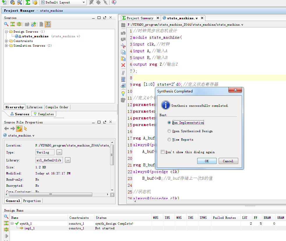 名称:时钟同步状态机设计Verilog代码VIVADO仿真