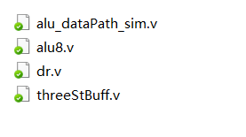 (4)参考alu_dataPath_sim.v,编写测试文件,分别仿真测试各电路模块以及顶层模块。仿真测试通过后,上板验证。自行设计仿真和上板验证(可选)过程,并分析仿真和上板验证(可选)结果。
