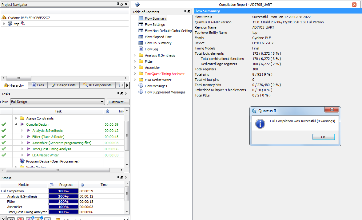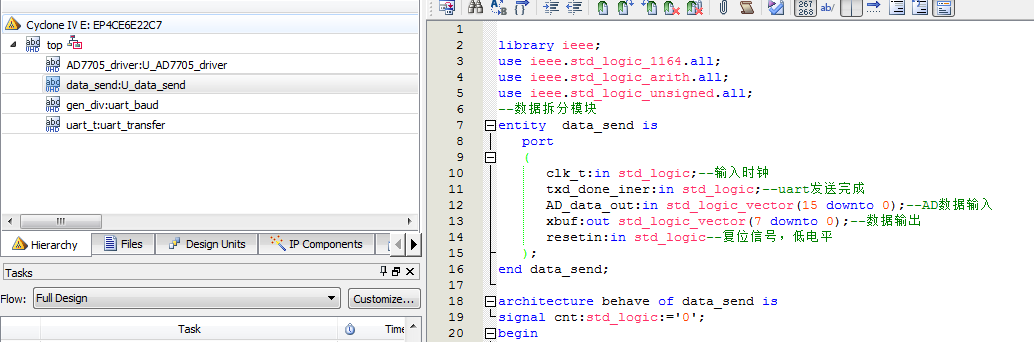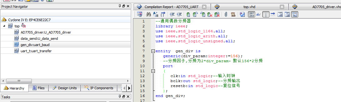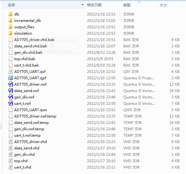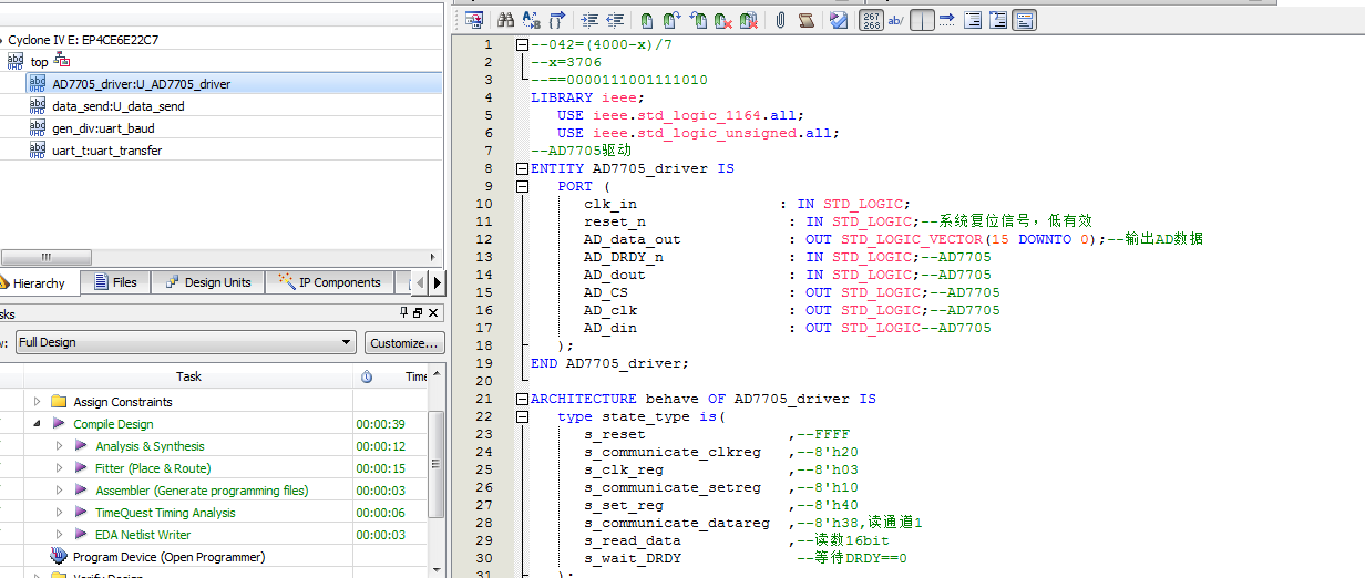 名称:基于FPGA的AD7705输入设计VHDL代码Quartus仿真