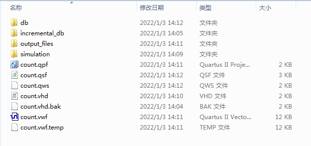 1)在计算机的E盘,建立文件夹count文件夹,项目名称为count,顶层设计文件名也为count。