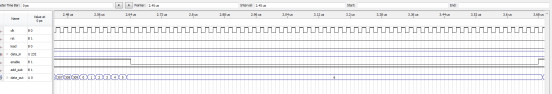 通过功能表可以看出,若rst信号为高电平,则为异步复位功能,data_out将输出0,对应仿真图3可以看到rst信号控制data_out输出低电平。