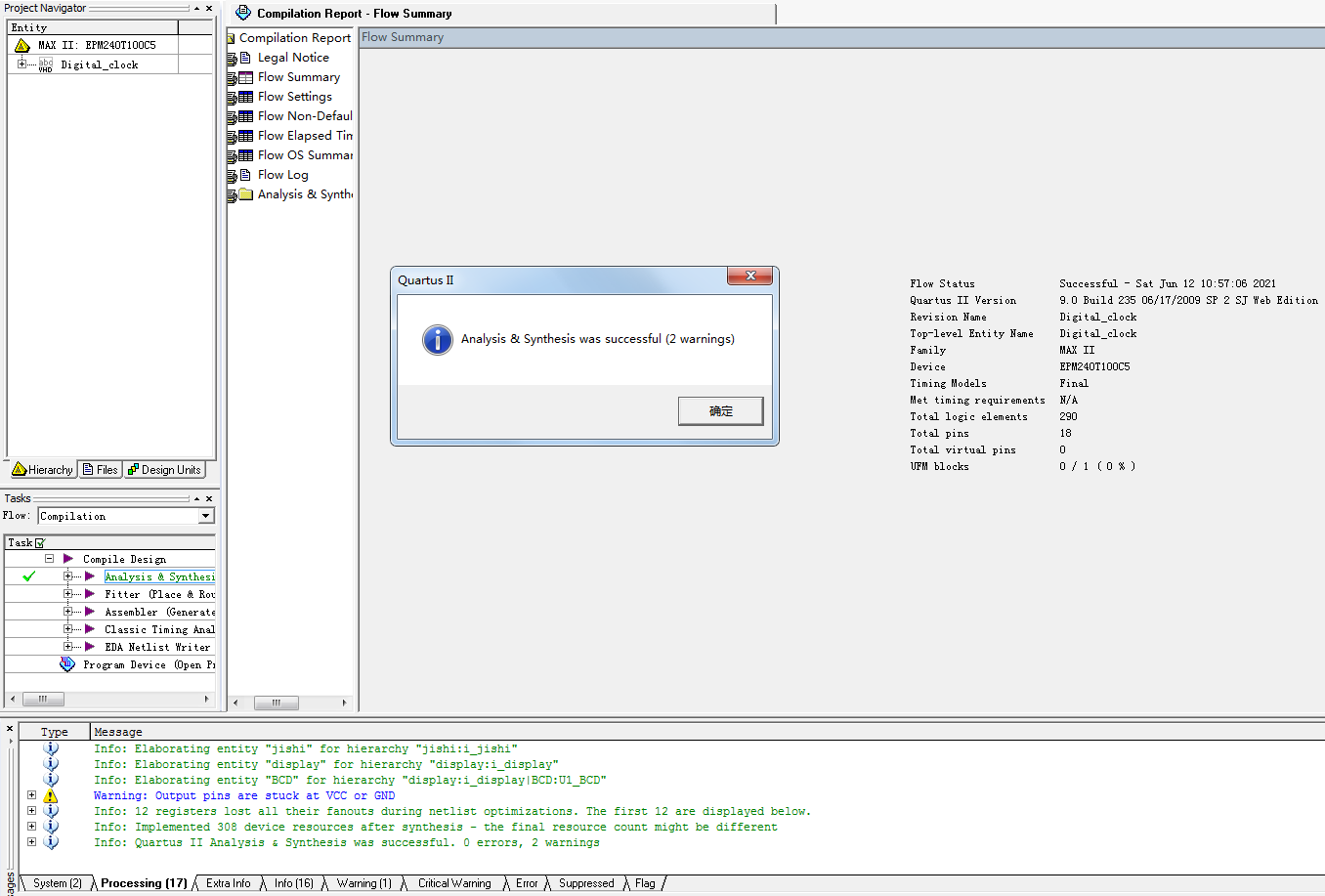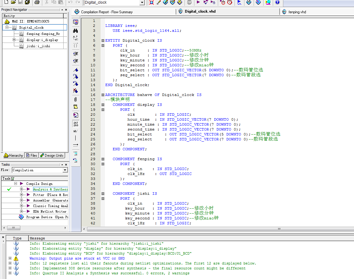 名称:基于FPGA的数字电子钟VHDL代码Quartus仿真