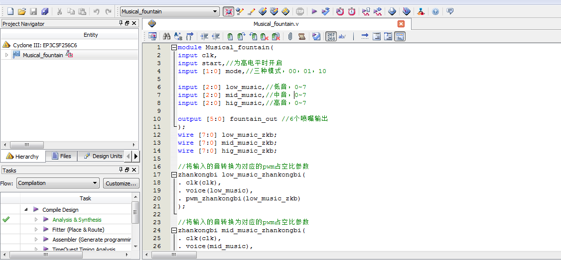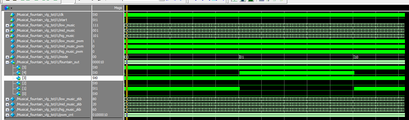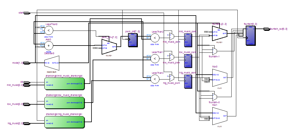 名称:基于FPGA的音乐喷泉控制Verilog代码Quartus仿真
