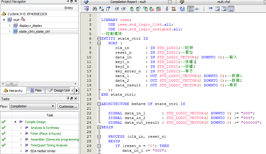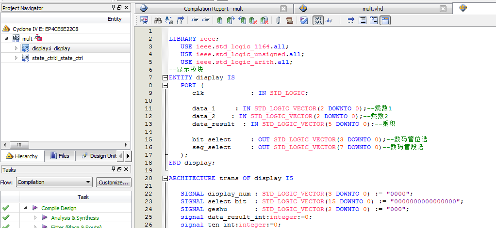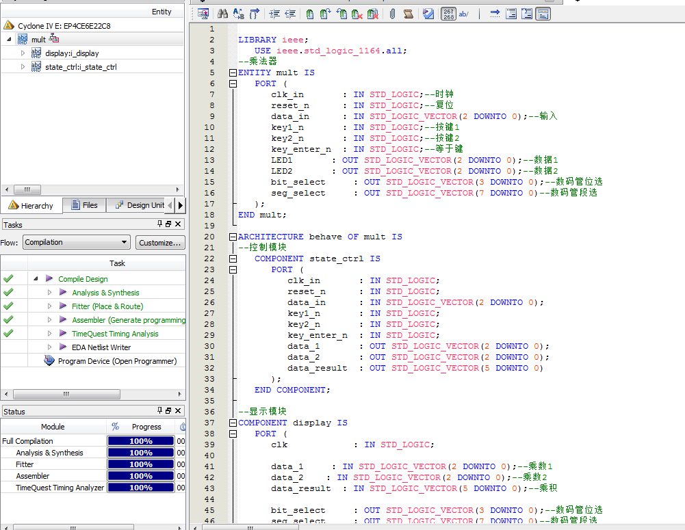 名称:基于FPGA的3位二进制的乘法器VHDL代码Quartus? 开发板