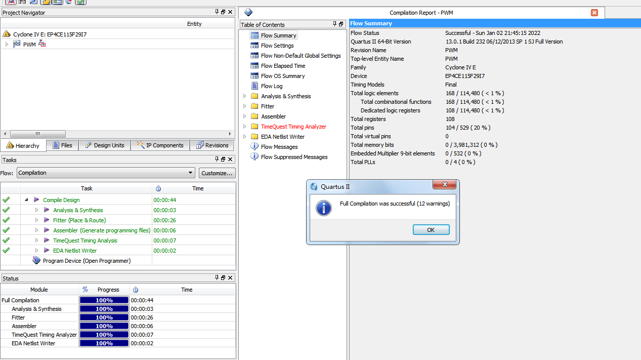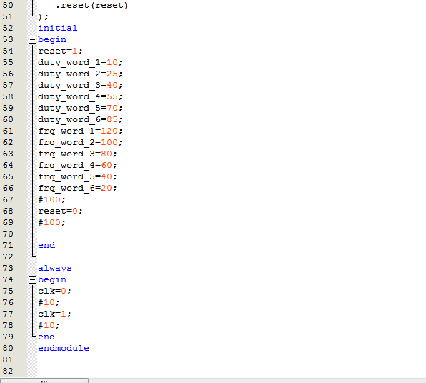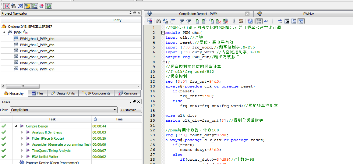名称:6路不同占空比的PWM波Verilog代码Quartus仿真