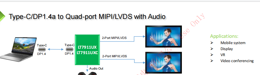 LT7911UXC是一款高性能 Type-C/DP1.4a 转 MIPI 或 LVDS 芯片,用于 VR/显示应用。