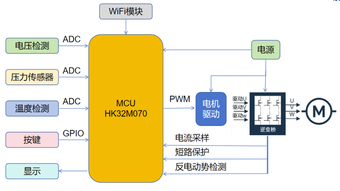 航顺HK32M070冰箱解决方案专为满足现代冰箱的高性能和智能化需求而设计。该方案以航顺HK32M070系列MCU为核心,结合丰富的外围设备和先进的控制算法,为冰箱提供了精准的温度控制、高效的能耗管理、智能的故障诊断以及便捷的用户交互等功能。