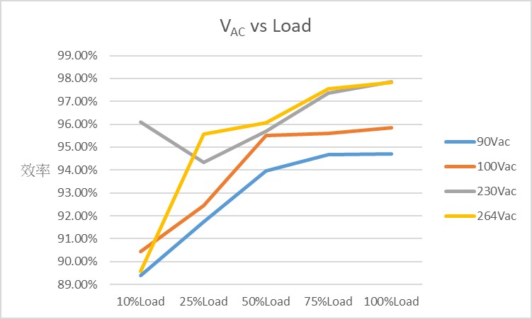 图四、本案在各输入电压对各负载条件下的效率表现
