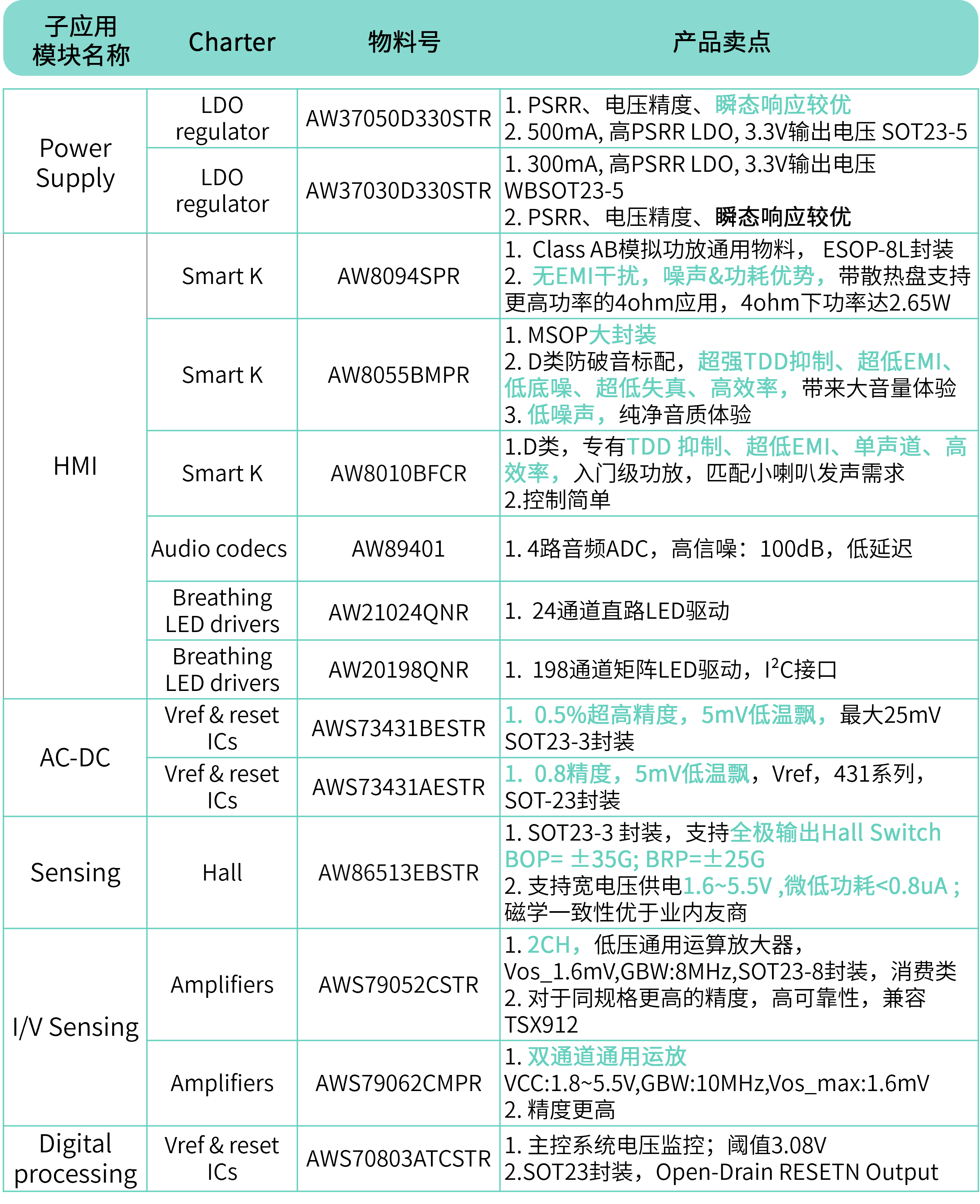 “会唱歌”的空调方案主推产品为搭载了SKTune?算法的AW88399QNR,具有以下特性: