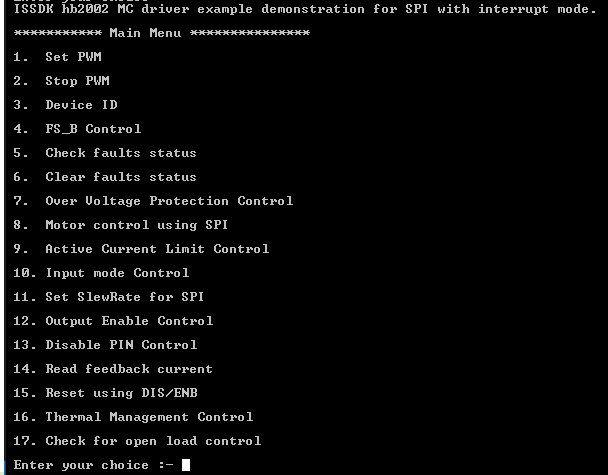 通过按下选项 7,用户可以使用 SPI 菜单退出电机控制。