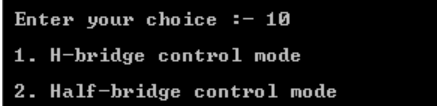 通过按下选项 1,用户可以启用 H 桥控制模式。 - 按#2进入半桥控制模式