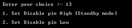 通过按下选项 1,用户可以将 DIS 引脚设置为高电平。 - 按 #2 将禁用引脚设置为低