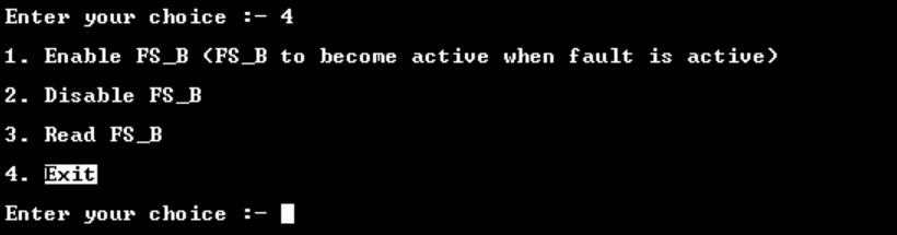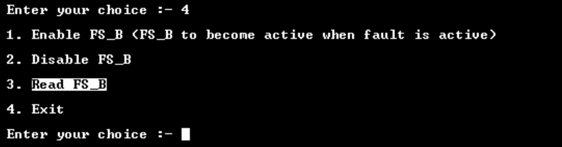 用户可以选择任何可用选项来使 FSB 引脚不遵循所选故障状态,并且选项 13 用于退出禁用 FS_B 菜单。- 按#3读取FS_B引脚