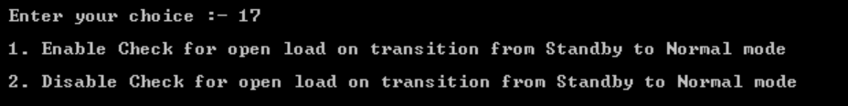通过按下选项 1,用户可以在从待机模式转换到正常模式时启用开路负载检查。 - 按#2 禁用检查开路负载