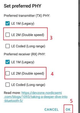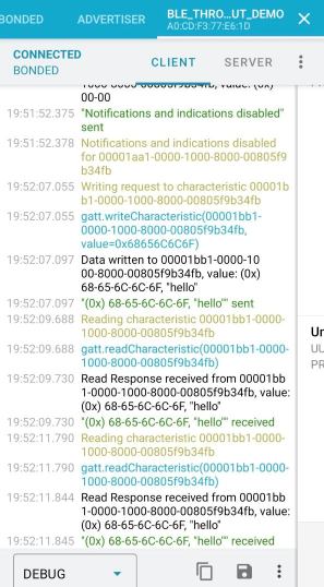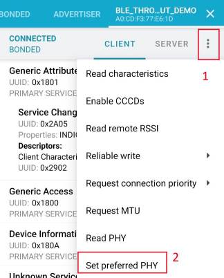 注意:请将“Ser Preferred PHY”更改为 1M PHY 或 2M PHY,以观察不同 PHY 级别的吞吐量差异。