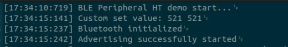 开机后,应用程序初始化并开始宣传自定义 GATT 服务(UUID:0x1AA1)。