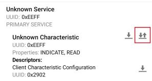 订阅特征 (UUID 0xEEFF) 的指示。观察设备对更新的确认。