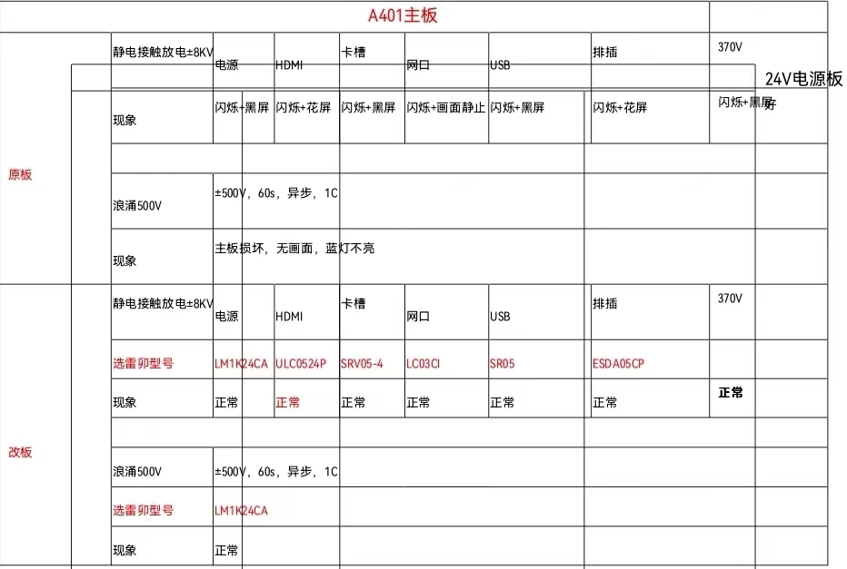 浪涌1KV | ±1KV,60s,异步,2C | 损坏,实测24V | |