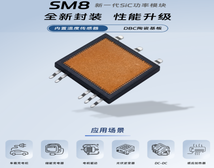 ASC30N1200SM8-顶部散热SiC半桥模块。SM8系列以“高性能+高集成+高可靠性”的全面优势,不仅解决了当前行业痛点,更为未来技术迭代提供了可靠基础。无论是新能源汽车的普及、光伏系统的升级,还是工业自动化的智能化转型,SM8系列都将成为不可或缺的“电力心脏”。