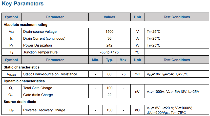 3. 参数:? ? VDS:1500V? ?ID:30A? ?RDS(on) :80mΩ