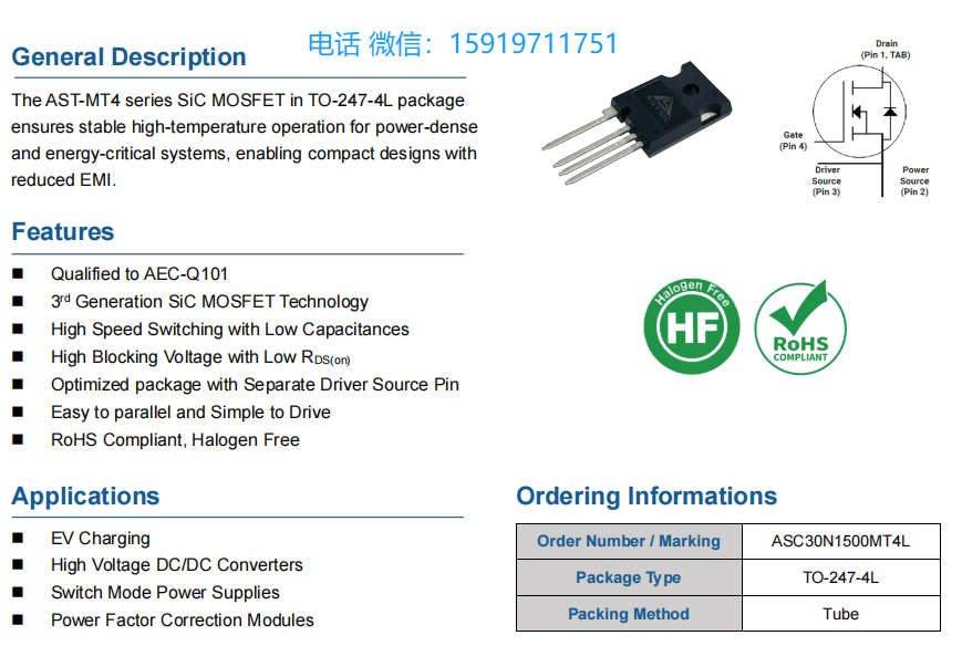 ASC30N1500MT4L碳化硅MOS管1500V80mΩ