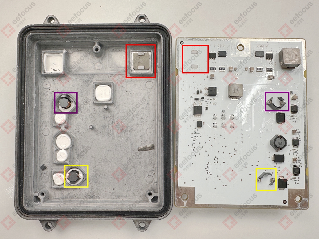 先说结论:因为前不久刚拆解了Model 3的大灯驱动板,整个结构设计、内部的硬件方案、PCB板上的元器件布局惊艳到我了,于是想看看特斯拉最高端的Model S的大灯驱动模块又是怎样的?说实话,拆解完挺让人失望,个人认为不如Model 3上的大灯驱动板方案,当然也有可能我拆解的这款是最早一批Model S上的零部件,新款的硬件方案可能已经改变,有了解的可以留言说说。