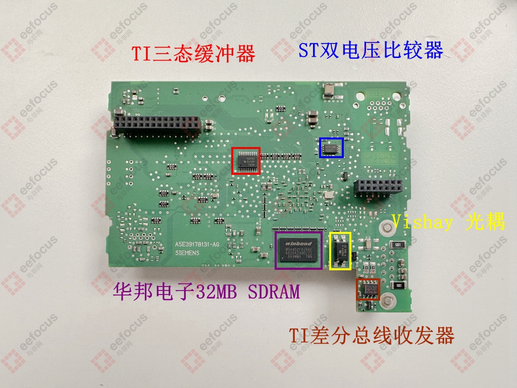 PLC的核心控制器是西门子自家的产品,当然也有可能是找厂商定制,丝印为A5E30235063,这更像是芯片的一个代号,从资料上来看推测是一颗基于Arm Cortex-R4的实时控制MCU产品。R系列是Arm专为??实时性、高可靠性、安全性??设计的一款处理器,常用于汽车、工业控制,最大特点之一就是低延迟,确保控制系统即使在恶劣环境下也能稳定、可靠、安全地运行,及时响应外部事件(I/O变化、通信中断等)。