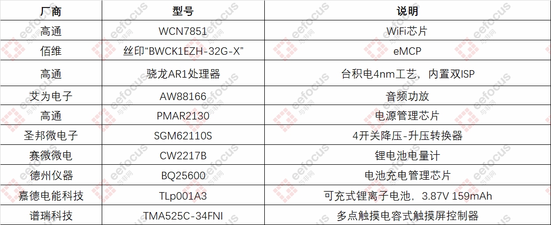 以上基本就是整个雷鸟AI眼镜V3内部的结构和硬件方案选型。整体看,核心是基于高通的硬件方案,外围功能器件有不少国产芯厂商参与,比如艾为电子的音频功放,佰维的存储,圣邦微电子的电源芯片,谱瑞科技的多点触摸控制器芯片等。可以看到AI眼镜在硬件方案上其实比较成熟,而我认为产品设计的难点是如何平衡硬件方案、结构设计以及重量。没错,AI眼镜作为一种特殊的可穿戴设备,重量尤为重要,无论是整体重量还是两个镜腿上的重量是否一致,直接影响佩戴体验,这需要反复斟酌。所以大家别看AI眼镜从目前曝光的一些硬件看比较简单,但实际要到量产,到产品体验,到消费者能接受,产品设计中会有很多平衡和割舍,反正不是那么容易。那您认为最影响AI眼镜体验的是什么呢?欢迎留言讨论!